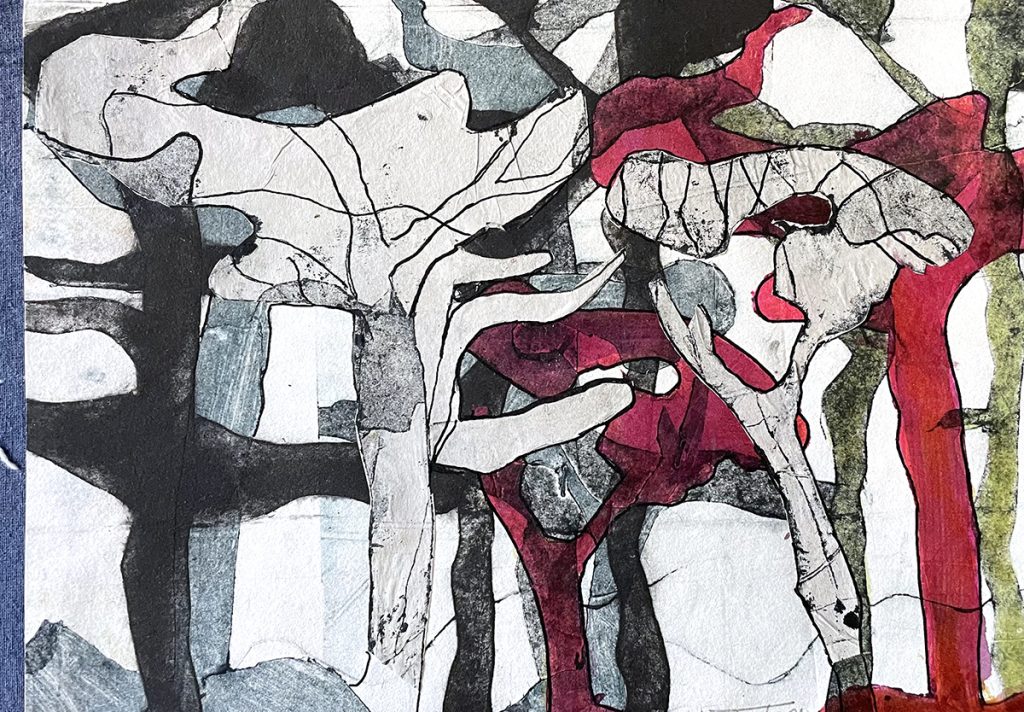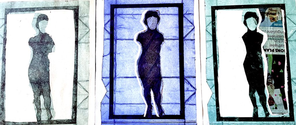 Comme si l’atelier était un continent inconnu, elle découvre et explore les supports et les matières, les techniques d’impression.