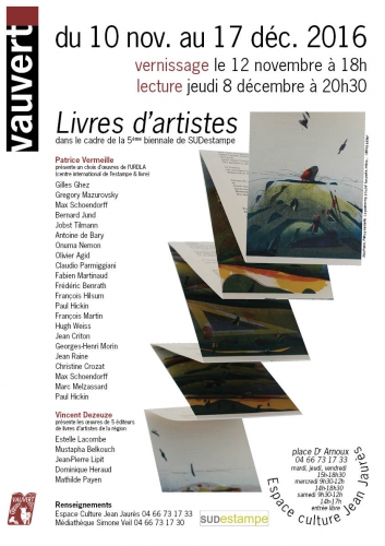 Les lectures se feront dans la salle d’exposition, dans le cadre de la 5ème Biennale SUDESTAMPE. Place du docteur Arnoux. Parking sur la place.