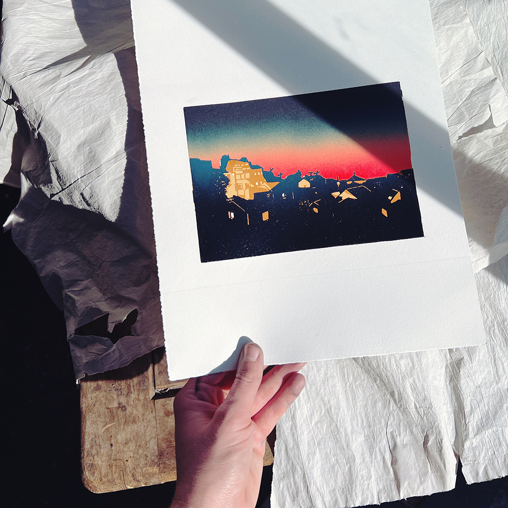 Avec ce parcours gravé, je vous propose de découvrir la linogravure sur plusieurs plaques avec une superposition de couleurs précise et repérée. Apprenez au fil des séances toutes les étapes nécessaires à la réalisation d’une estampe tout en couleur et en profondeur : le transfert de l’esquisse sur le linoléum, le travail de la plaque, le transfert d’une plaque à l’autre, les techniques d’impression pour un résultat propre. Nous verrons également différentes techniques comme le dégradé de couleurs ou le jeu des encres transparentes. À la fin du parcours, vous serez capable de créer une édition de plusieurs estampes uniformes utilisant les techniques citées précédemment.