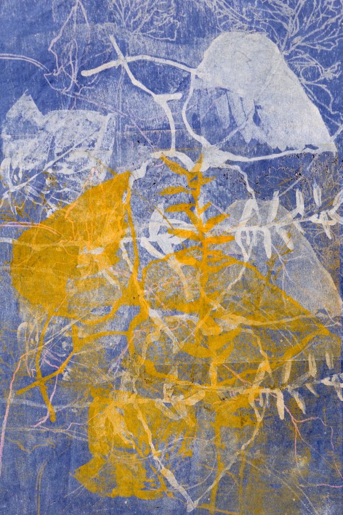 2ème jour : nous imprimerons des sections et réaliserons des impressions superposées. Nous imprimerons aussi sur des petits carrés de papier, pour ensuite explorer les textures que nous avons créées ensemble.